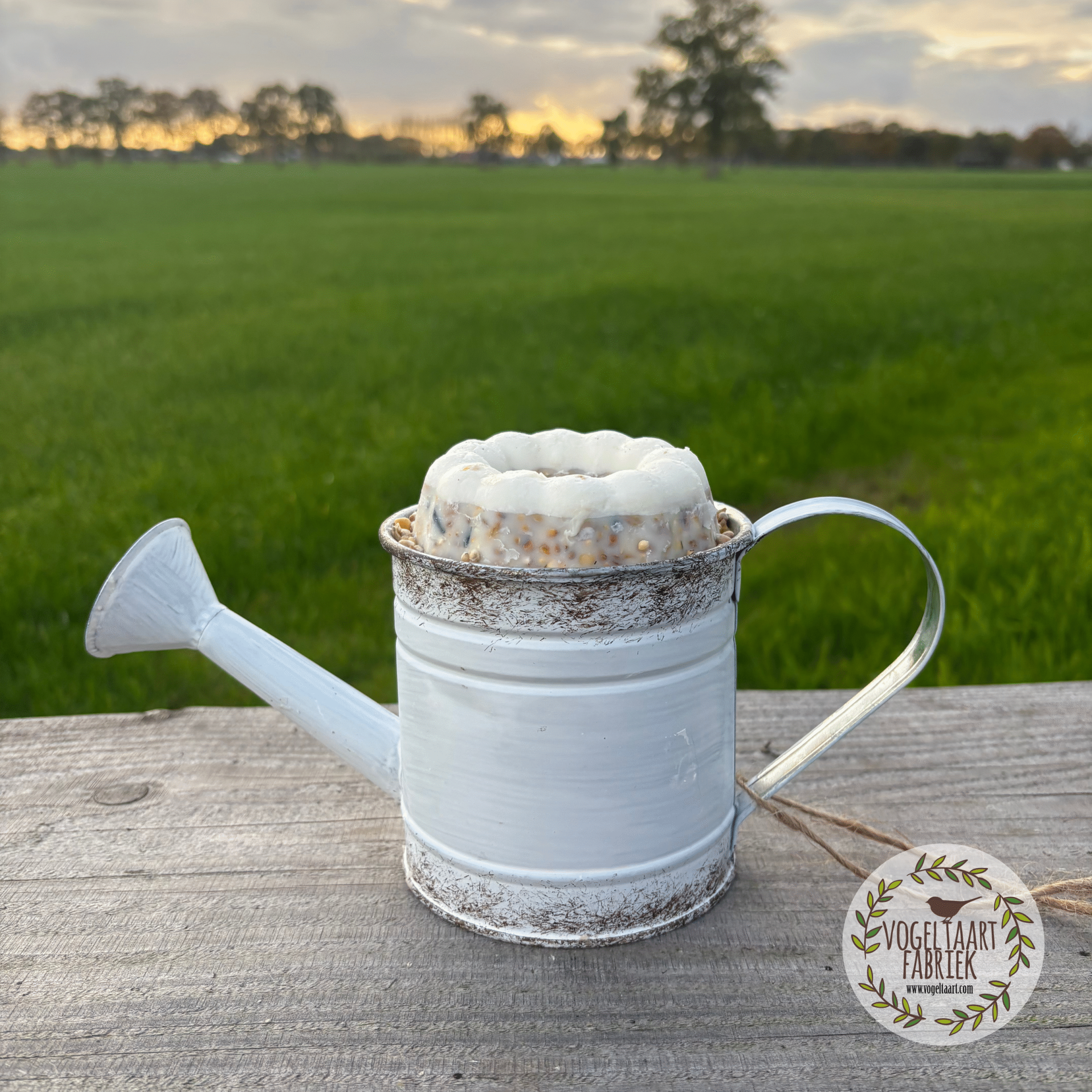 Vogeltaart in zinken gieter – originele traktatie voor tuinvogels