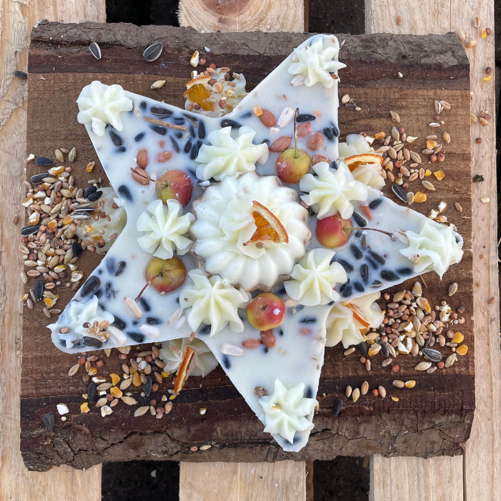 Breng leven in je tuin met onze prachtige Ster Vogeltaart, speciaal ontworpen voor vogels. Deze unieke lekkernij, met leuke decoratie appeltjes, is een ware traktatie voor al je tuinvogels.