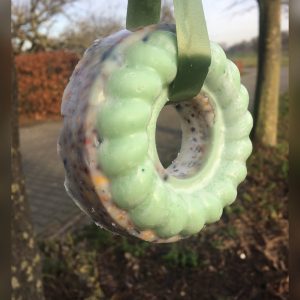 Gemaakt van vet, natuurlijke kleurstoffen en verschillende zaden.